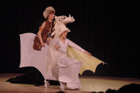 Jeugdtheater Zjuust 'Het oneindige verhaal' De spelers brengen de toneelbewerking van 'The Never Ending Story' naar het boek van Michael Ende Tijdens de première bleek dat de 22 in soms bizarre kostuums gehulde kinderen het publiek ontroerden met prachtig spel en gevoelige liedjes.
